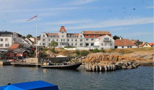 I år går turen til Bornholm. Vi skal bo i Sandvig Havn, på hotellet yderst til venstre.